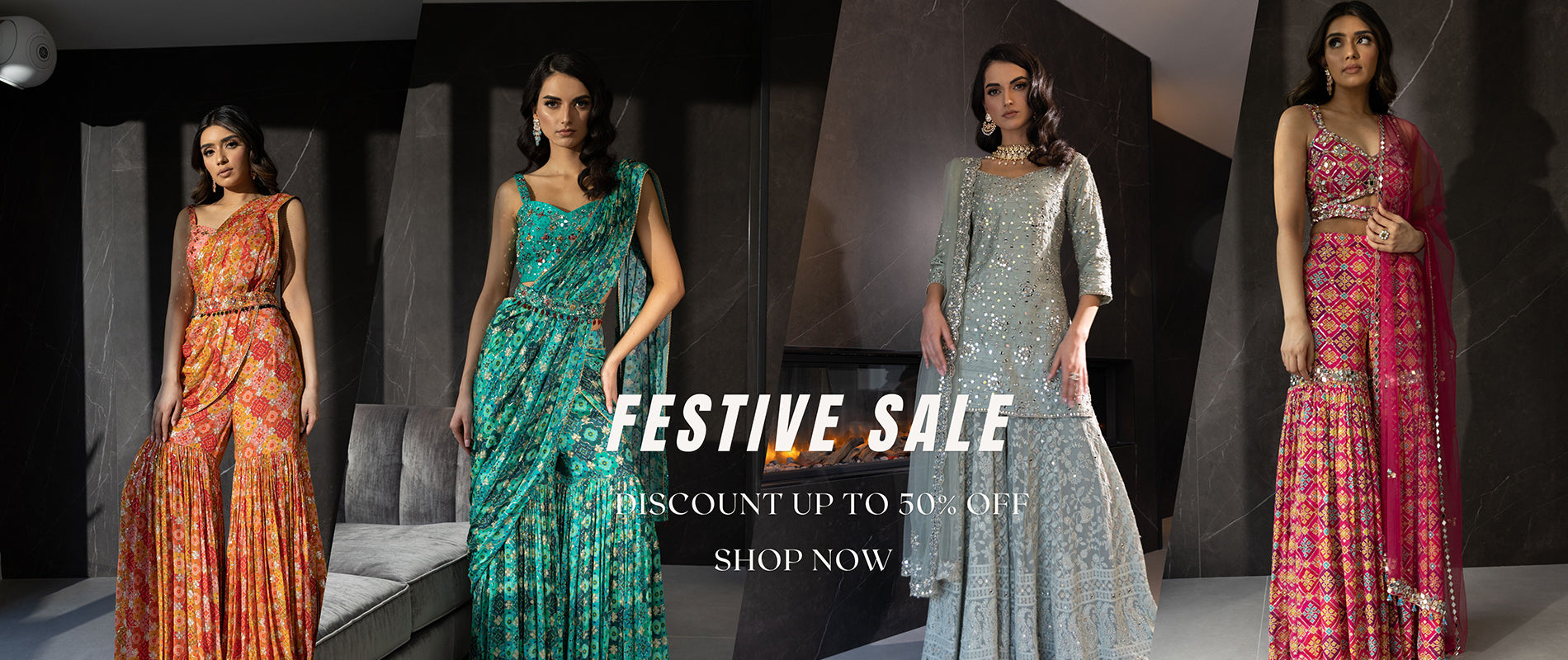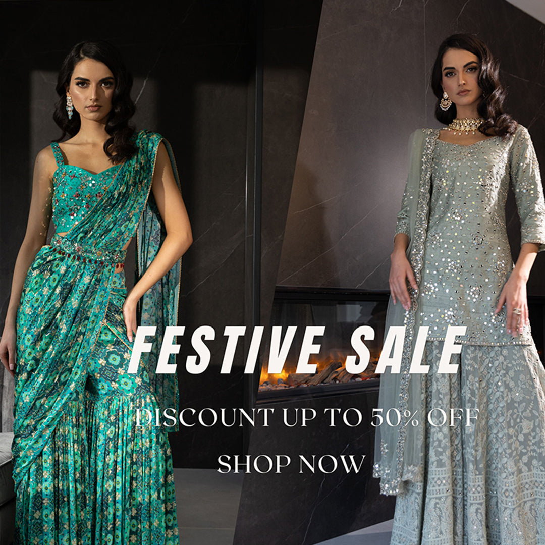 Icy Blue And Pale Pink Pre-Stitched Lycra Saree