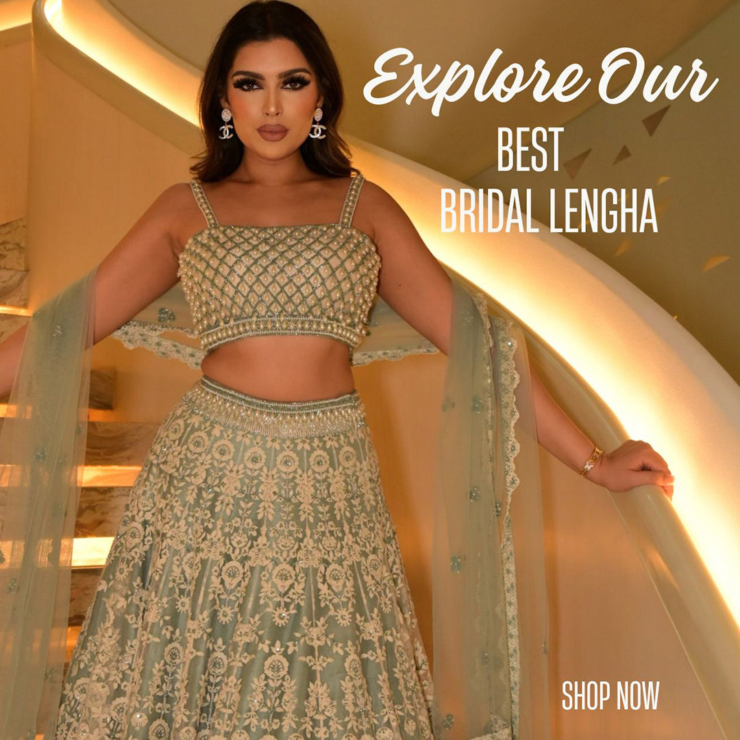 Sage Green Lengha with Pearl And Rose Gold Sequence Work