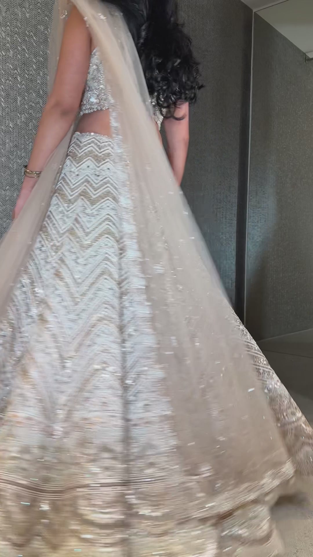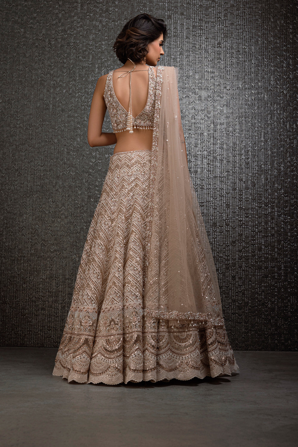 An ensemble that celebrates artistry through rhythm and refinement, this lehenga captures a graceful play of texture, light and silhouette. It merges intricate handwork with fluid structure to create an aura of timeless sophistication.